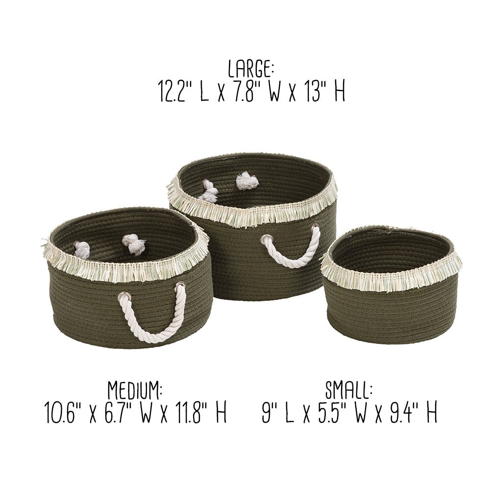 Elevate your décor in an instant with a set of versatile cotton rope baskets that are as chic as they are handy. This set of 3 nesting baskets has an earthy aesthetic with its soft green hue and chunky rope wrap contrasted by a flowing fringe. Their double handle design makes it simple to tote them around the house to do everything from picking up magazines to collecting the kids’ laundry. And when they’re not in use, they nest for convenient storage. Beach homes and modern spaces alike love the versatility, convenience, and unexpected whimsy that these bohemian baskets bring to the table. And the bedroom. And the living room. And the laundry room. You get the idea.